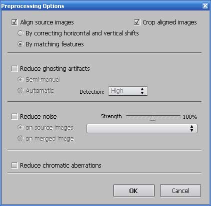 در صورتی که در حین عکس گرفتن کادر دوربین کمیتکان خورد Photomatix به صورت خودکار تصاویر را روی هم تطبیق میدهد ولی استفاده از سه پایه پیشنهاد میشود.