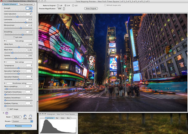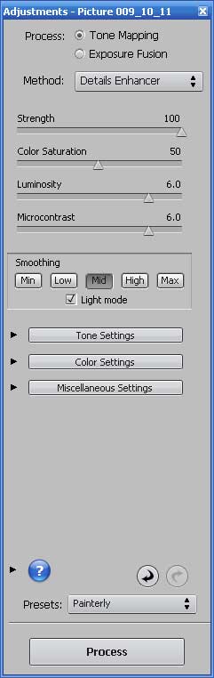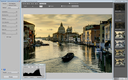 روی تصویر ۲۳ بیتی HDR و “یکی شده” یا Merge شده اعمال میشود. متنوع ترین بخش این برنامه است، که سبکهای بسیار زیادی را بسته به تنظیمها و متودها در اختیار شما میگذارد.