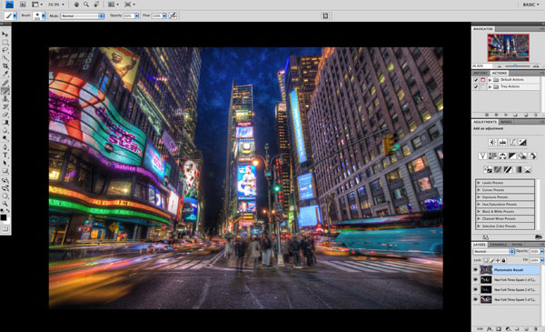 - وارد کردن تمام عکسهای اولیه و عکسی که به وسیله Photomatix ساخته شده به فتوشاپ.