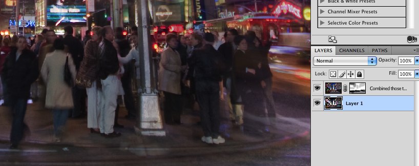 در این لایه نیز از عکسی استفاده کرده ام که مردم در بهترین حالت قرار دارند و با Mask کردن لایه رویی (عکس HDR) ایراد عکس که انگار مردم مثل روح شده اند را برطرف کردم.